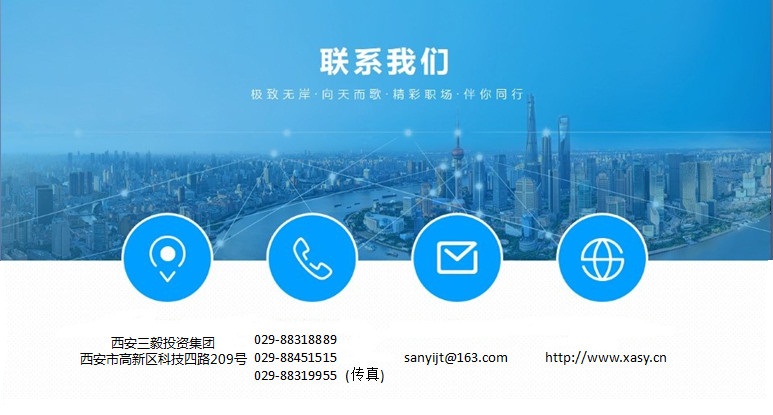 公司名稱:西安三毅投資集團 公司地址:西安市高新技術開發(fā)產業(yè)區(qū)科技四路209號 郵政編碼:710065 公司電話:029-88318889 029-88451515